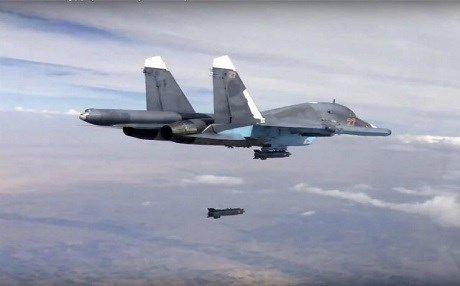Russian state television accidentally broadcast footage of Russian Su-34 fighter-bomber aircraft mounted with incendiary bombs at the Russian airbase in Syria’s western Latakia province. Human rights groups discourage the use of such weapons in war, especially in civilian areas.