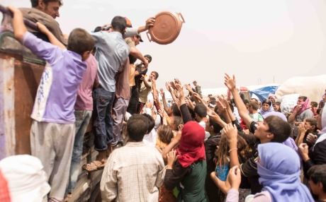 Nowruz camp, on the outskirts of the city of Derike in Syrian Kurdistan, was built in November to provide shelter for 20 internally displaced Syrian families but swelled to 12,000 people after Yezidi refugees began pouring into the camp on August 10.