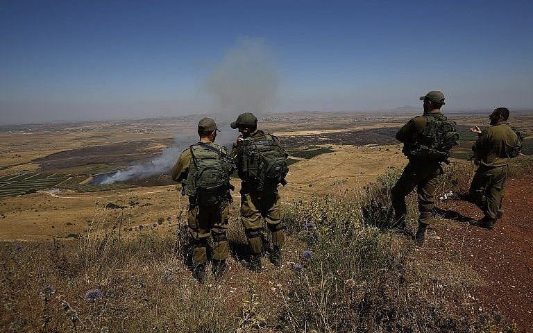 Israeli soldiers at an army base in the Golan Heights look out across the border with Syria. AFP file photo