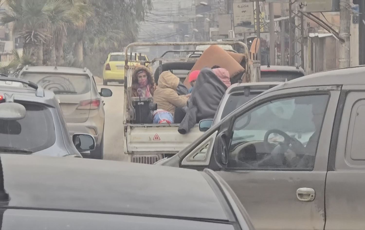 A family in the back of a vehicle in Hasaka, Syria, on January 23, 2025. Photo: screengrab/Rudaw