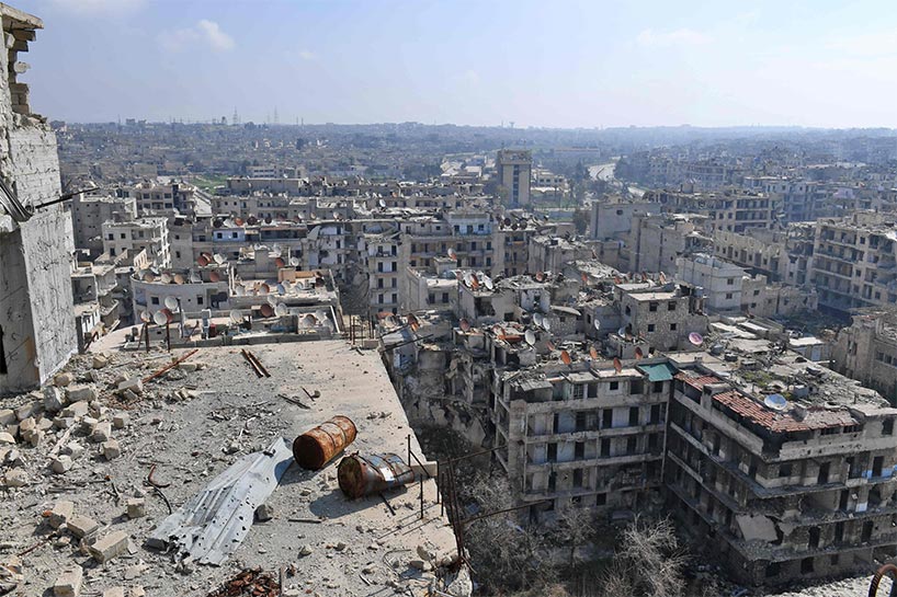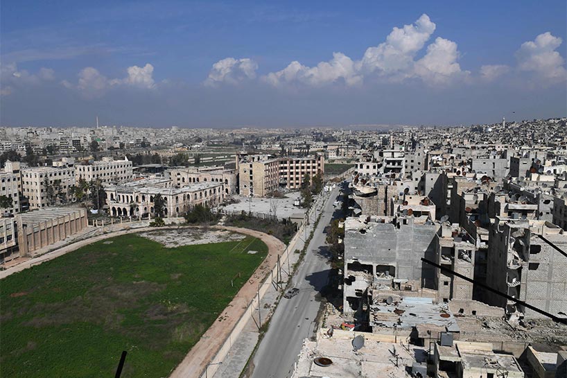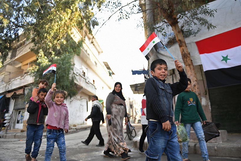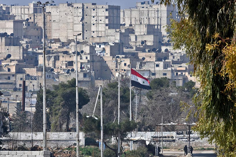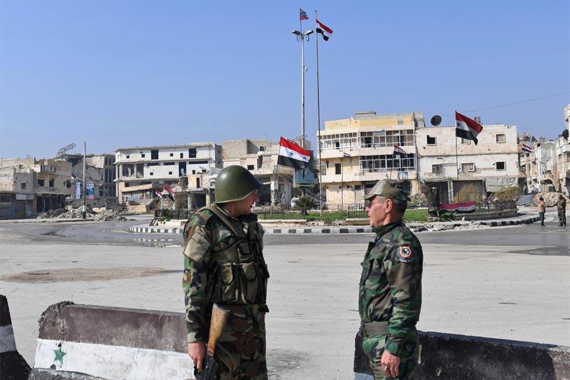 Syrian army soldiers raised flags and portraits of President Bashar al-Assad in neighbourhoods of Aleppo city on Friday.