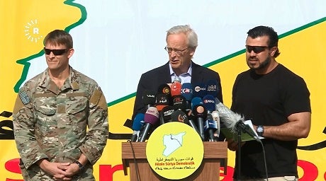SDF spokesperson Kino Gabriel read a number of congratulatory statements sent to the SDF, including a message from British Army General Nick Carter, whose government supports the international coalition.
