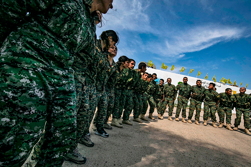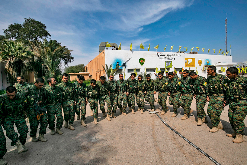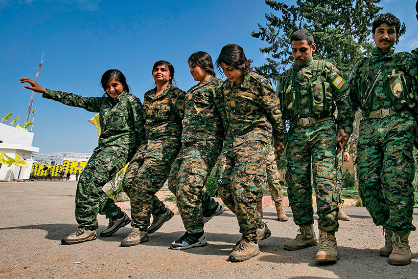 In Al-Omar, an oil field used as the main SDF staging base for the final phase of the assault, fighters in their best fatigues laid down their weapons and broke into song and dance.