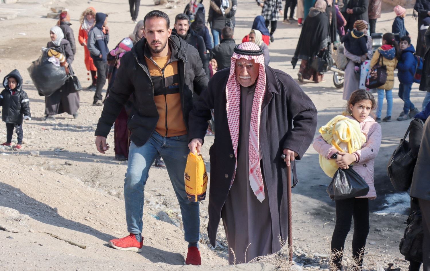 Locals leaving their homes in neighbourhoods near the Ghweran prison in northeast Syria’s (Rojava) Hasaka province on January 22, 2022. Photo: AFP