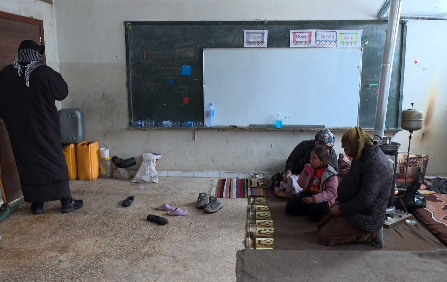 Her heart heavy with grief, a 60-year-old woman from Afrin now lives with her family of six inside a small classroom, where they have been staying for seven days.