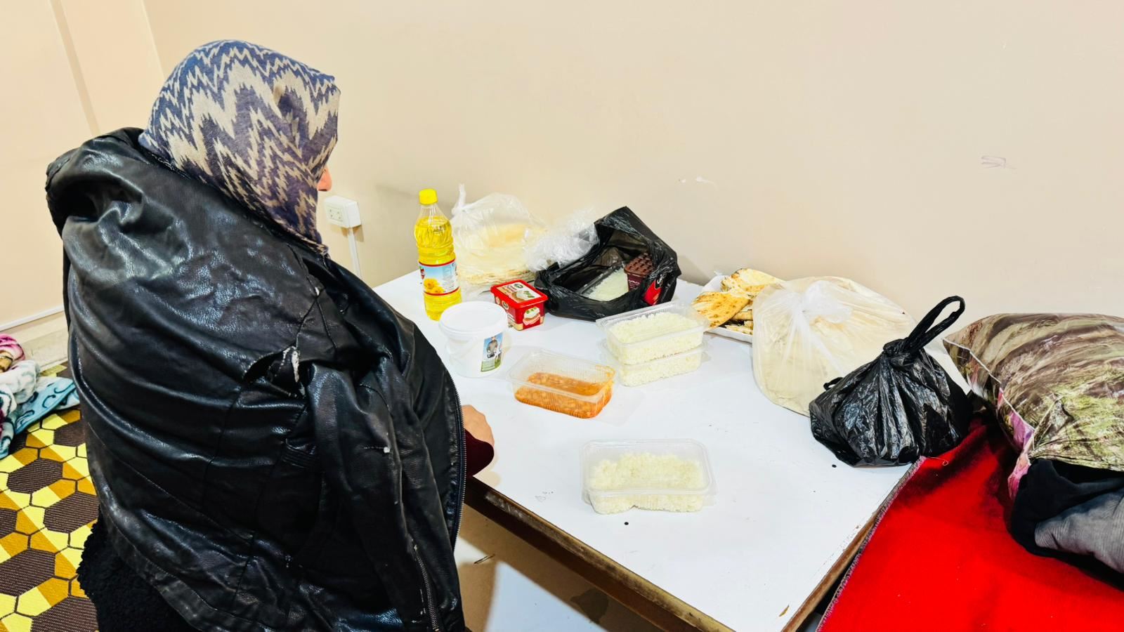 On Friday no food was delivered by the NGOs to the school where the 45 year old mother has taken refuge in the city of Qamishli for the past seven days. Her four children had left over from Thursday when the family received some rice and bean stew.