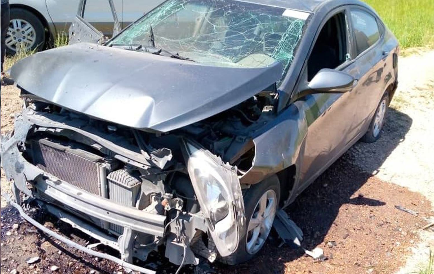 Aftermath of the destroyed car targeted by the suspected Turkish drone strike on Kobani, northern Syria on April 25, 2023. Photo: ANHA