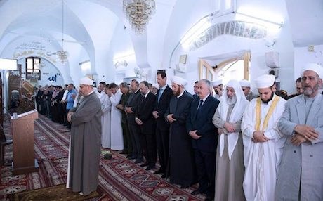 He said Assad’s presence in the city of Hama to perform Eid al-Fitr prayers was “a sign that the Syrians are steps away from the victory and the return of security and peace to Syria.”