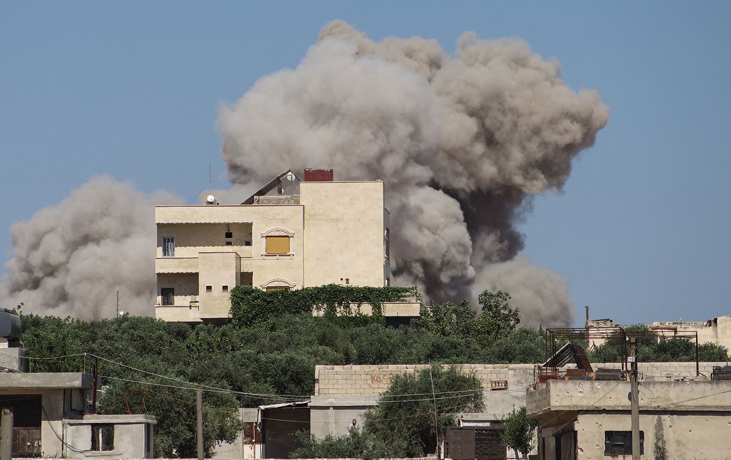 A plume of smoke rises from a building following a reported Russian air strike on Syria's northwestern rebel-held Idlib province, on June 25, 2023. Photo: Abdulaziz Ketaz/AFP