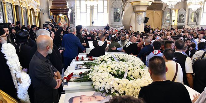 Mourners lay victims of Mar Elias church attack to rest at Holy Cross church in Damascus on June 24, 2025. Photo: SANA