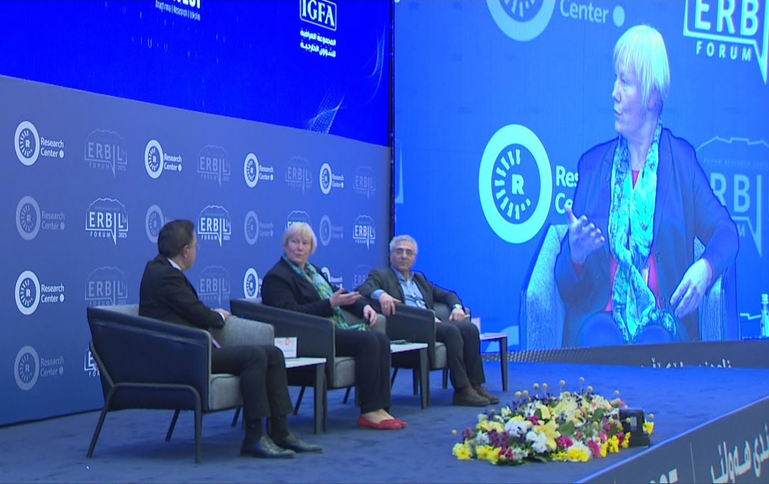 Christiane Hohmann, Germany’s ambassador to Iraq, speaking during a panel discussion at the Erbil Forum on February 26, 2025. Photo: Rudaw