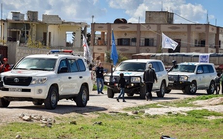On Sunday, the Syrian Red Crescent in coordination with UN agencies delivered 30 trucks of food and non-food items, including medical items, to the town.