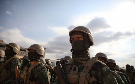 Fighters of Jaysh al-Izza, a formerly US-backed Syrian rebel group active in northern Hama governorate and parts of Idlib, take part in a military show during their graduation ceremony at a training camp near the Bab al-Hawa crossing between Idlib province and Turkey on July 18, 2019. Photo: Aaref Watad | AFP