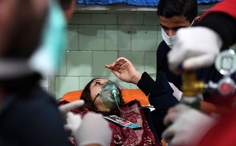 An AFP reporter saw dozens of civilians carried or helped into a hospital, appearing to be dizzy and breathing with difficulty. Staff gave them oxygen masks.