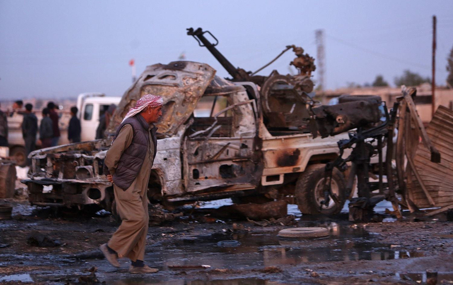 Aftermath of a car bomb attack at a local market in the Turkish-held Syrian Kurdish town of Tel Halaf along the border with Turkey in northeastern Hasaka province, November 26, 2019. Photo: Nazeer al-Khatib / AFP