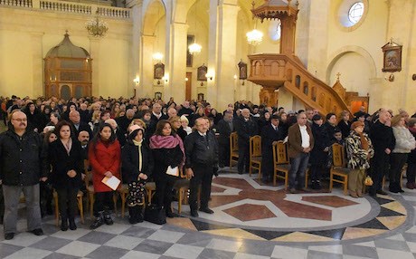 In Aleppo, home to one of the largest Christian communities in the Middle East, Christmas Day was celebrated inside a church half destroyed by war.