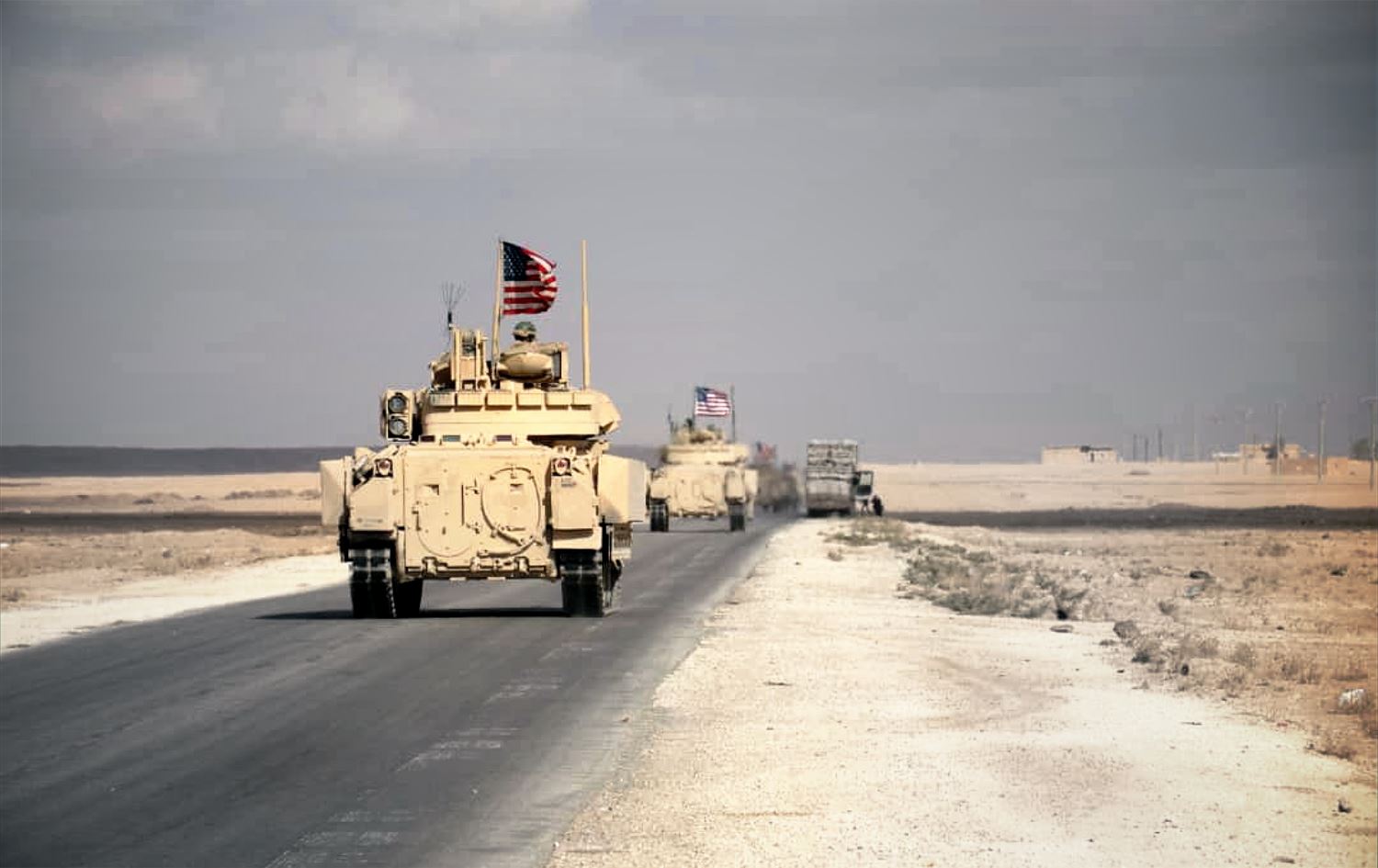 US patrols passing by villages in northeastern Syria’s (Rojava) Deir ez-Zor and Hasaka. Photo: SDF/Twitter