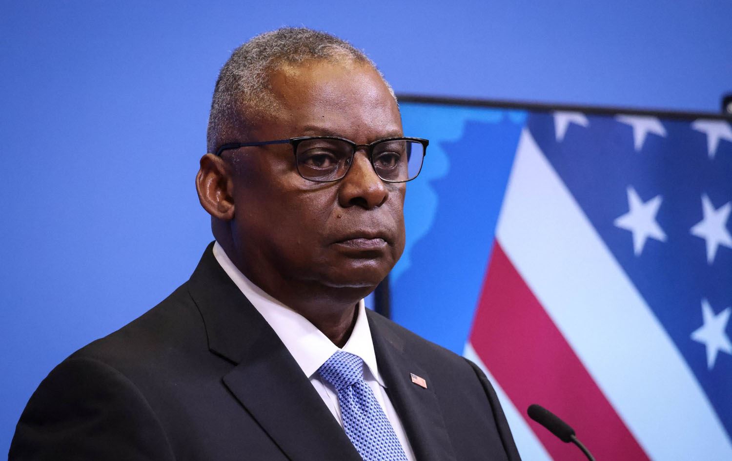 US Defence Secretary Lloyd Austin gives a press conference during the NATO Council Defence Ministers Session at the NATO headquarters in Brussels on October 12, 2023. Photo: AFP