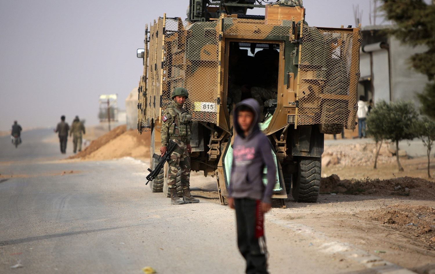 A Turkish soldier stands near his armored vehicle outside the north Syrian town of Ain Issa, November 26, 2019. Photo: Bakr al-Kasem / AFP