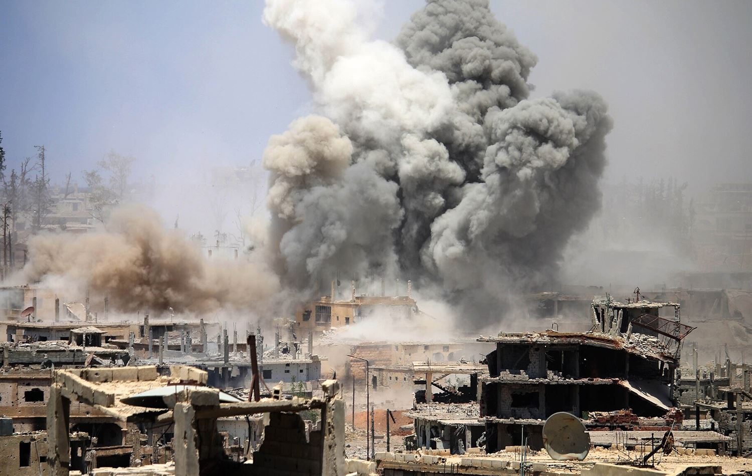 Smoke rises from buildings following a reported airstrike on a rebel-held area in the southern Syrian city of Daraa on May 22, 2017. Photo: AFP