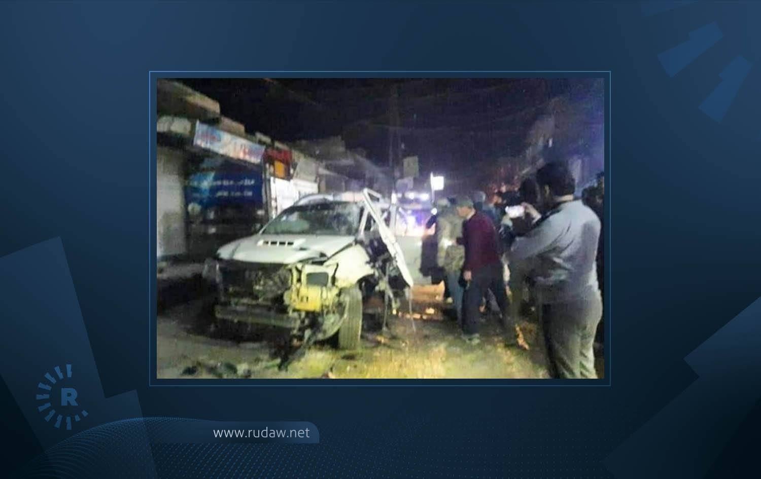 The security official's car that was damaged, leading to the arrest of 16 Kurds in Afrin. January 27, 2021. Photo: submitted to Rudaw