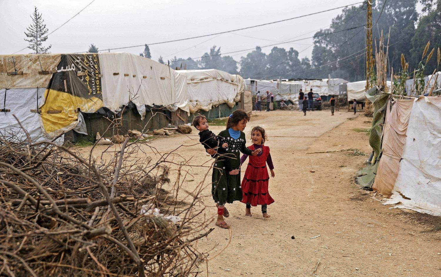 Children walk past tents at a makeshift camp for Syrian refugees in Talhayat, in northern Lebanon on October 26, 2022. File photo: Ibrahim Chalhoub / AFP