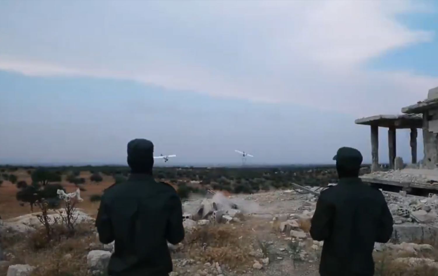 Screengrab from a propaganda video published by HTS media shows the group launching suicide drones toward regime positions in Aleppo province on November 27, 2024. Photo: HTS media