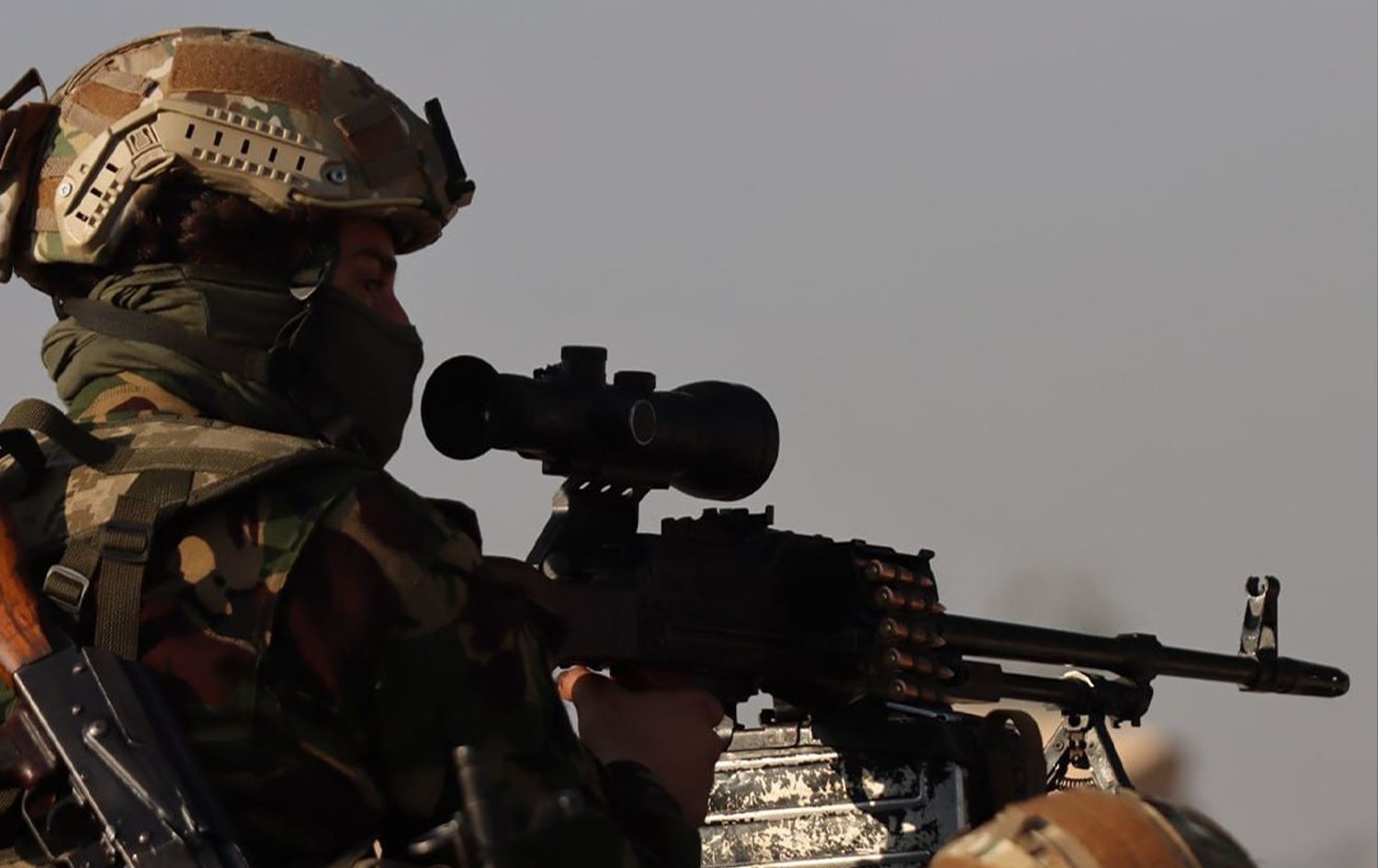 An HTS fighter taking position amid clashes with regime forces in Aleppo province on November 28, 2024. Photo: HTS media/X