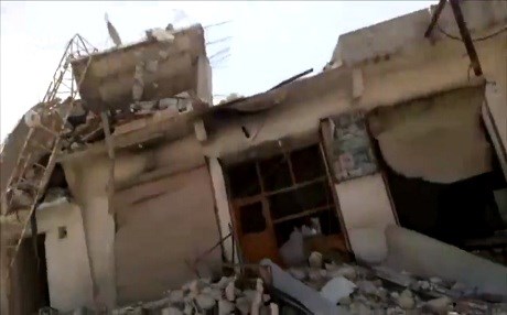 Video from inside the town of Shiye shows some buildings destroyed, shops with black 'Xs' spray-painted and desolate streets.