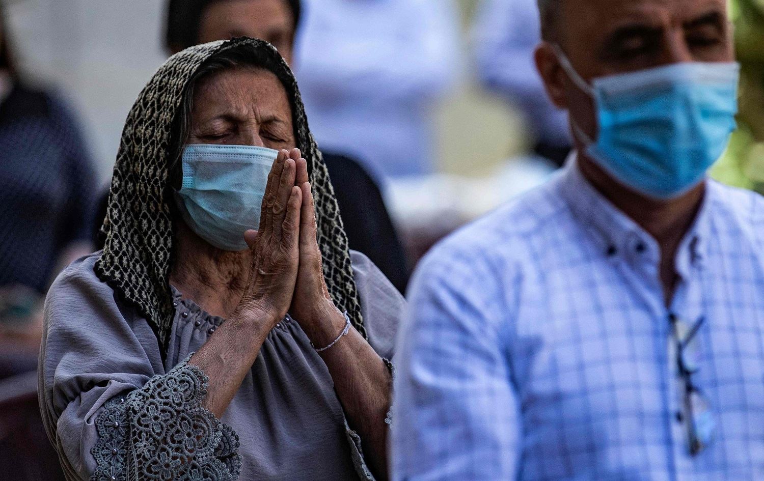 People wearing masks pray during a mass in Qamishli on April 24, 2021, commemorating the Armenian genocide. Photo: Delil Souleiman/AFP