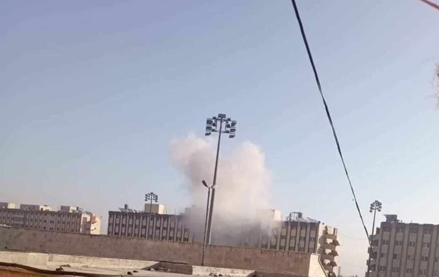 Smoke rises from an attack on a university dormitory in Aleppo, Syria on November 29, 2024. Photo: SOHR