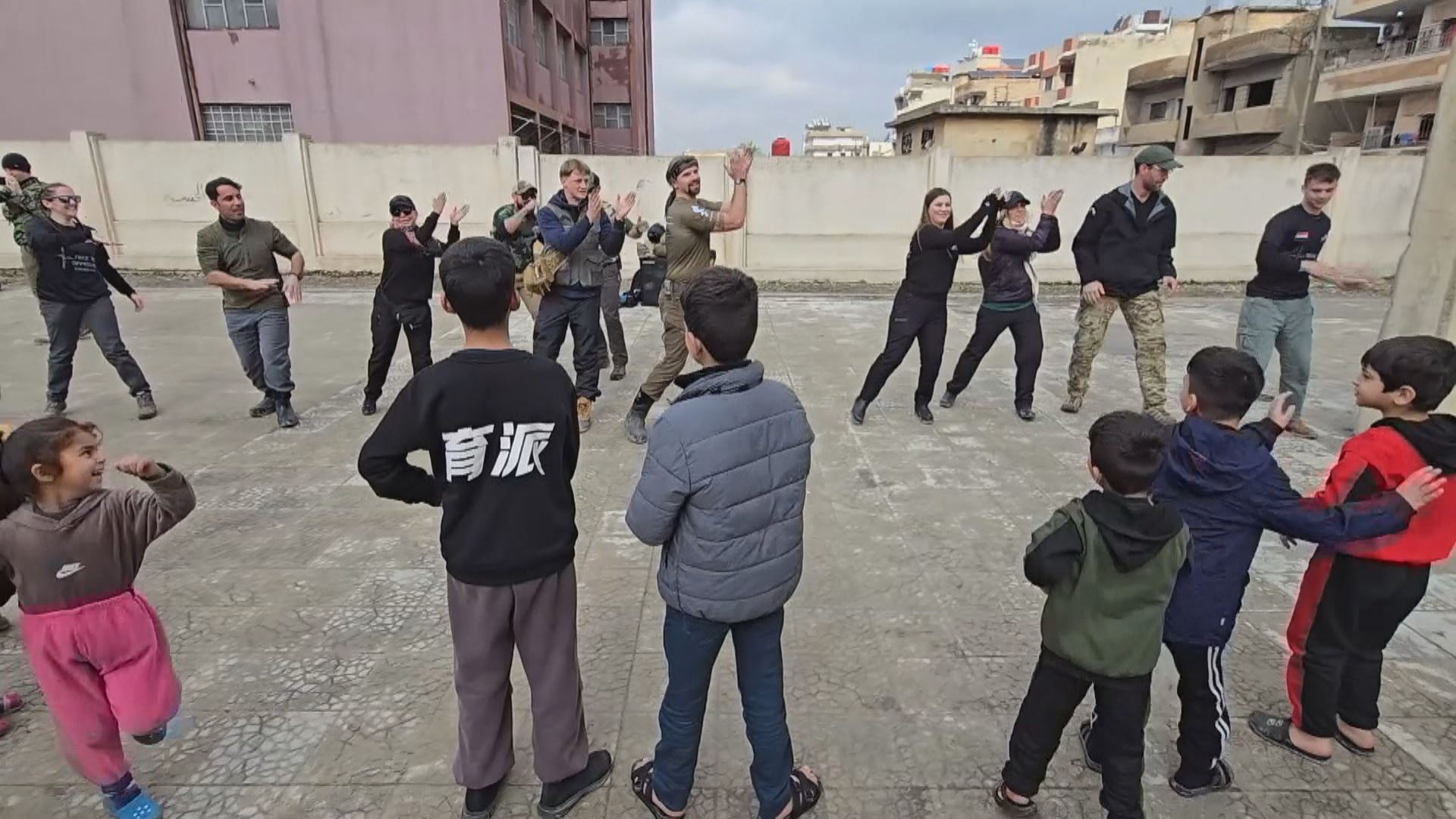 In Qamishli city, the team organized a lively dance activity at a local school, drawing laughter and smiles from children traumatized by ongoing conflict.