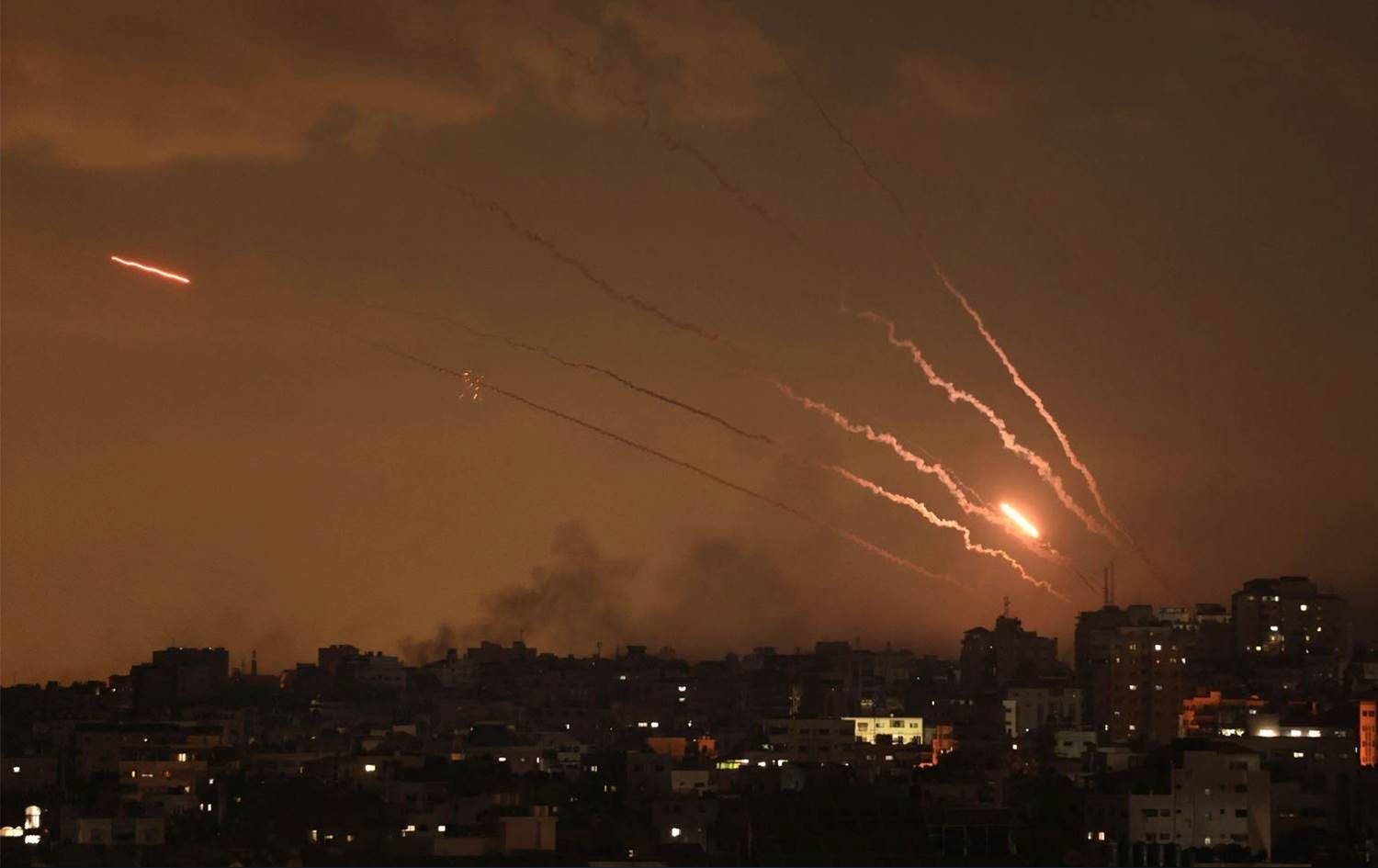 A salvo of rockets is fired by Palestinian militants from Gaza towards Israel on October 10, 2023. Photo: Mahmud Hams/AFP