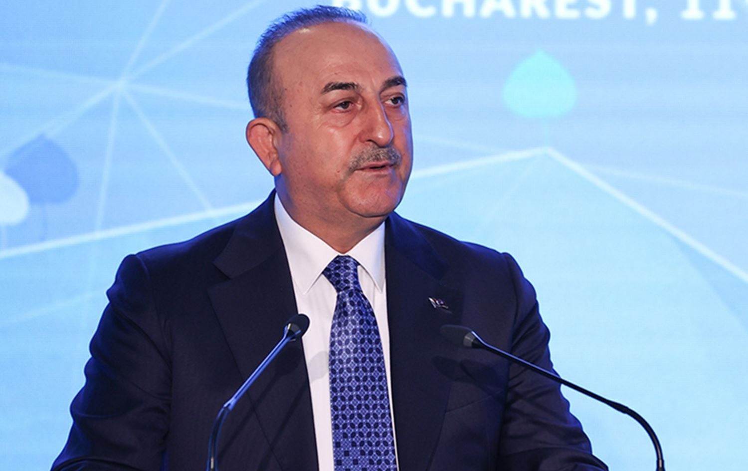 Turkish Foreign Minister Mevlut Cavusoglu speaking at a press conference in Bucharest, Romania on November 30, 2022. Photo: AA