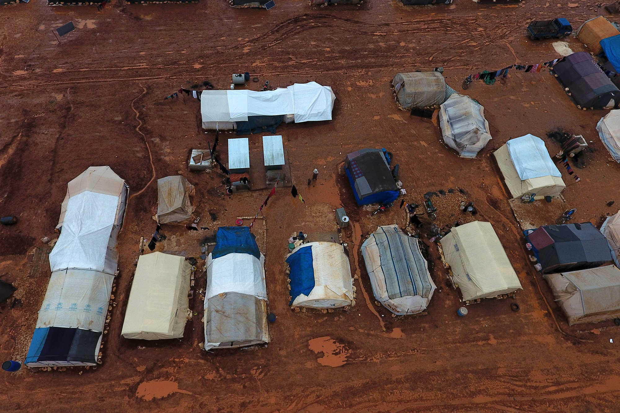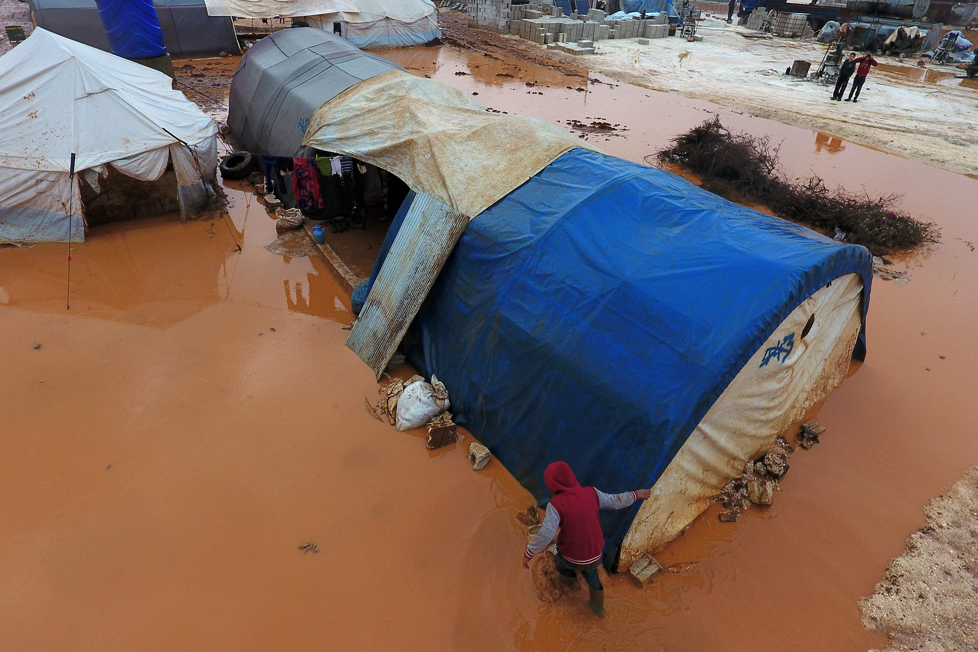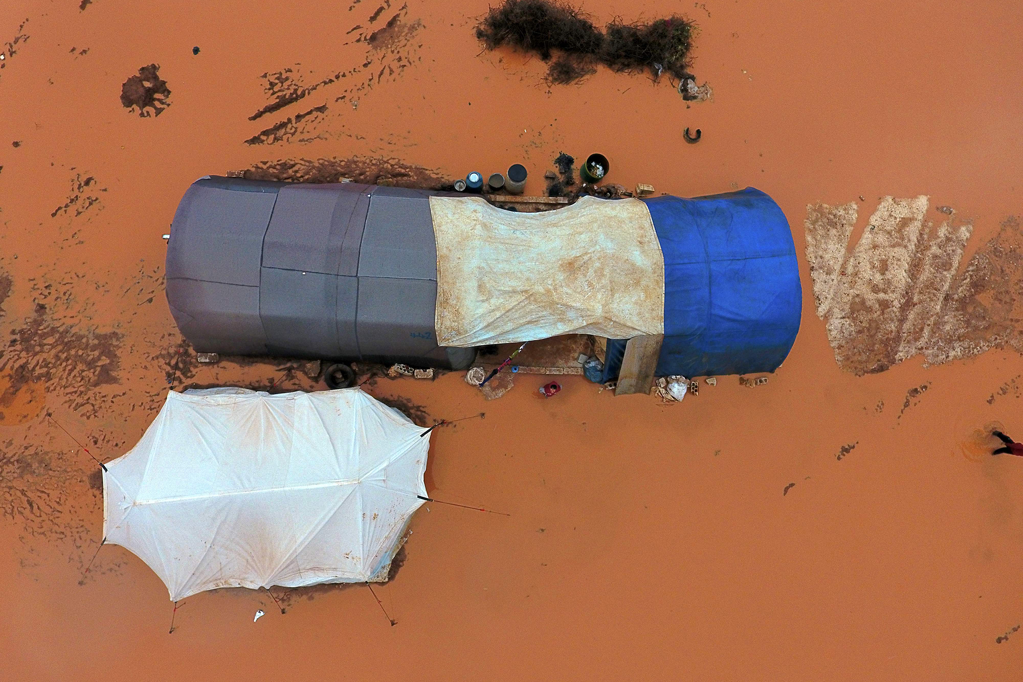 Living in makeshift camps in Sarmadā and Kafr Dariyan towns in the north of Idlib province, photos taken this weekend highlight the dire living conditions exacerbated by recent flooding.