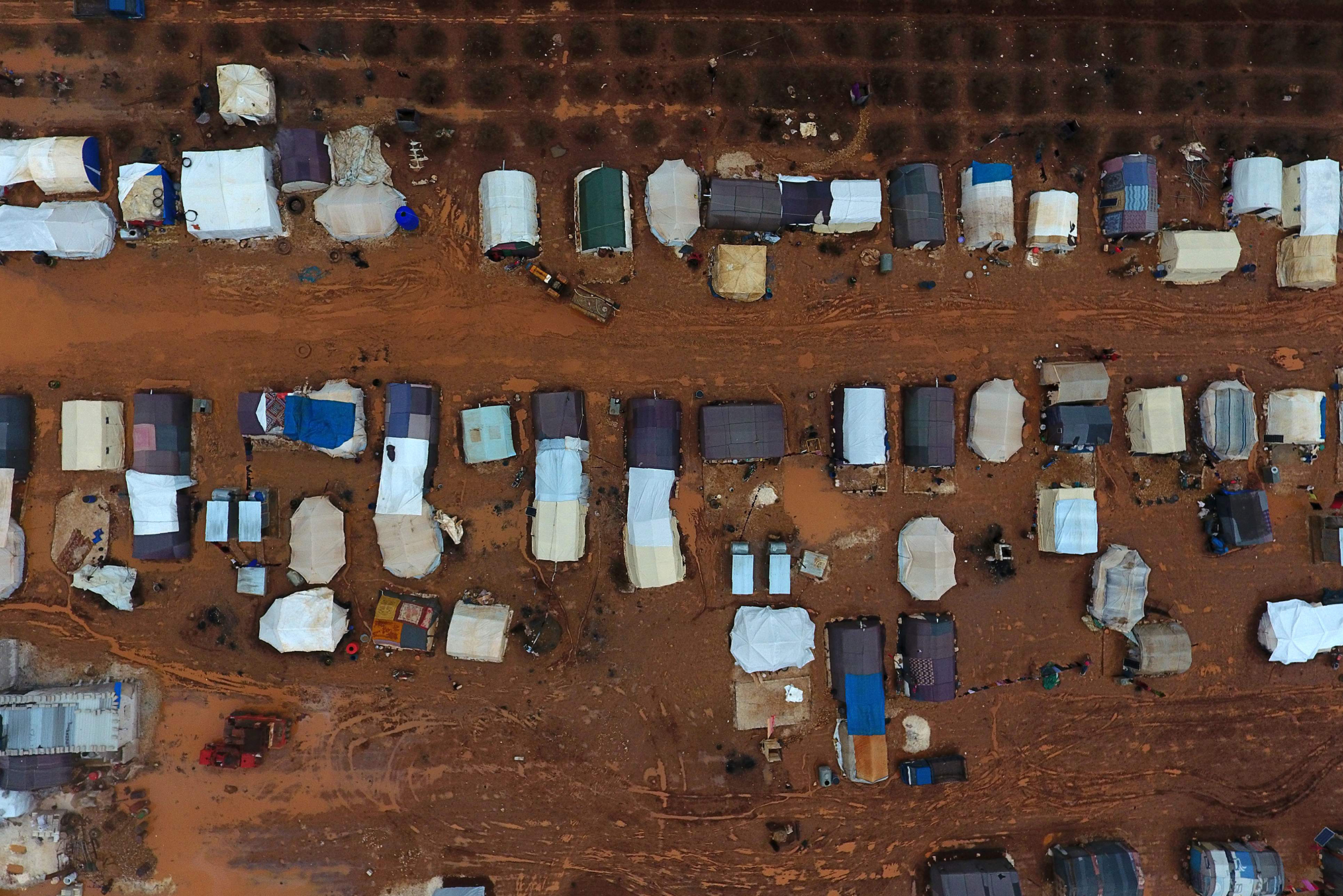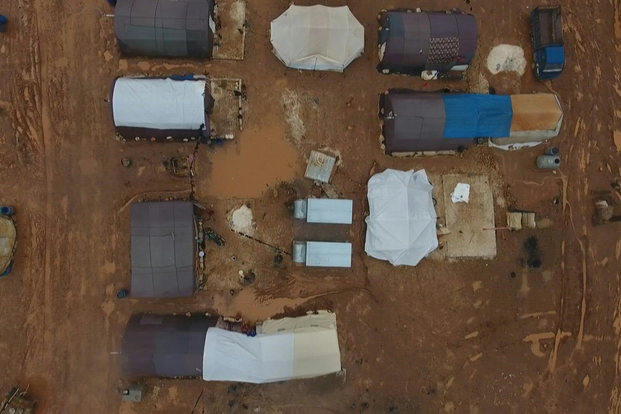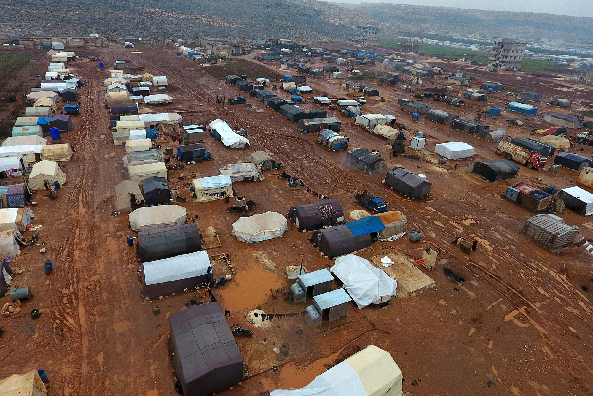 Living in makeshift camps in Sarmadā and Kafr Dariyan towns in the north of Idlib province, photos taken this weekend highlight the dire living conditions exacerbated by recent flooding.