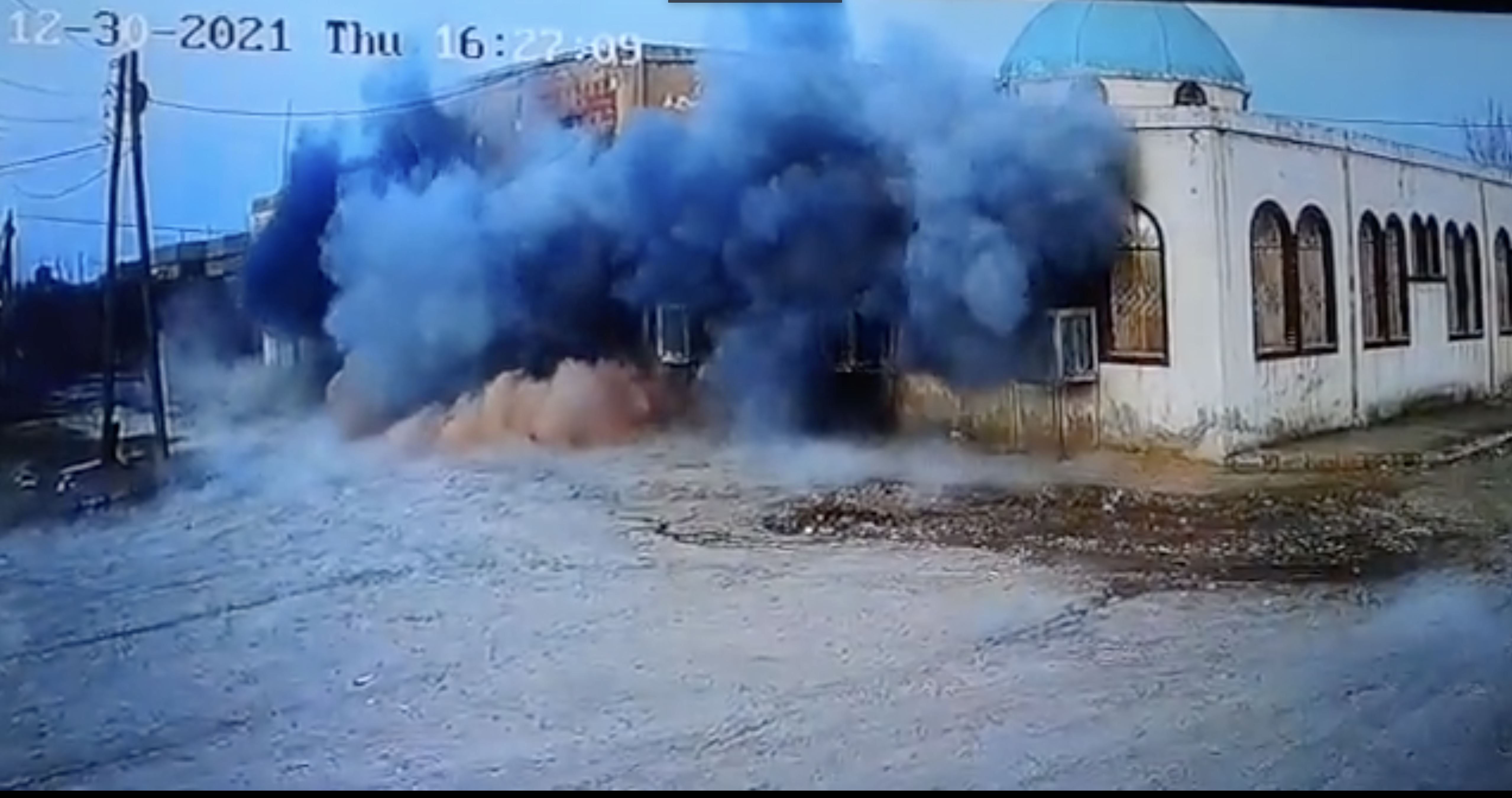 The moment a mosque in Hasaka was targeted by Turkish forces. Date: December 30, 2021. Photo: SDF/handout