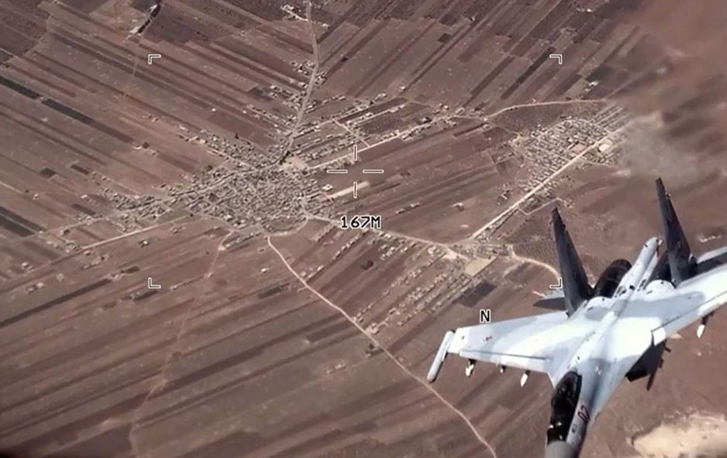 In this image from video released by the U.S. Air Force, a Russian Su-35 flies near a U.S. Air Force MQ-9 Reaper drone on July 5, 2023, over Syria. U.S. officials say that a Russian fighter jet flew very close to a manned U.S. surveillance aircraft over Syria Sunday, July 16, 2023. Photo: US Air Force/AP