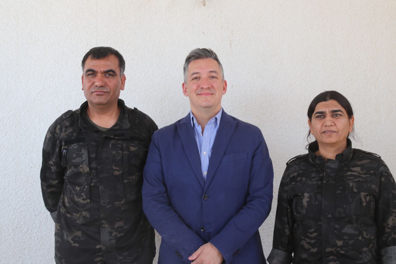 The Kurdish-led Syrian Democratic Forces (SDF) said in a statement on Wednesday that its senior commander, Mahmoud Barkhadan, separately received UK Brigadier Gen. Karl Harris, deputy to the General Commander of the Combined Joint Task Force – Operation Inherent Resolve (CJTF-OIR) and Nikolas Granger, the High Representative of the US in Rojava.