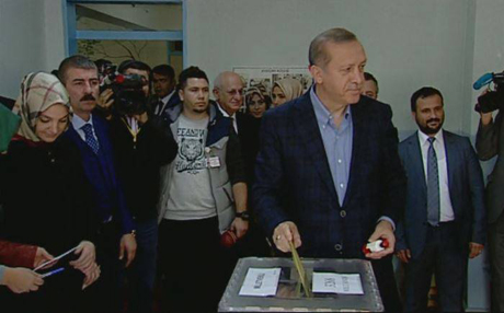 Turkey's President, Erdogan casted his vote in Istanbul. Rudaw photo