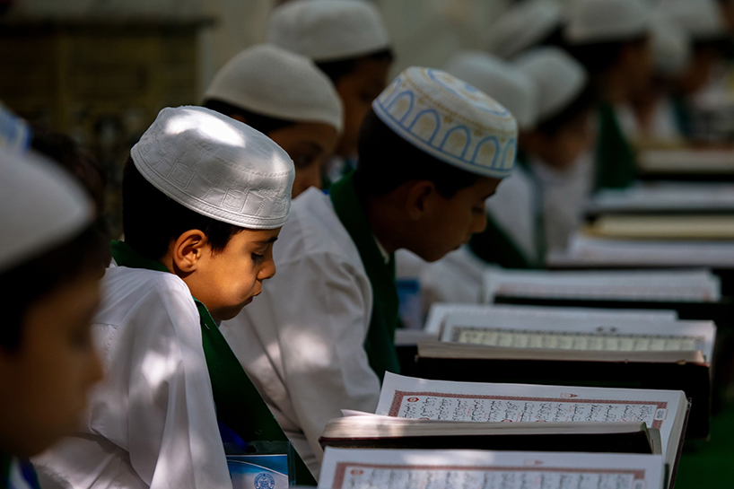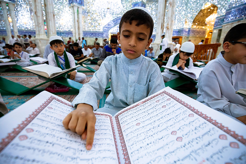 Children read the Quran at the ornate Imam Ali Ibn Abi Taleb shrine in Iraq’s holy city Najaf.