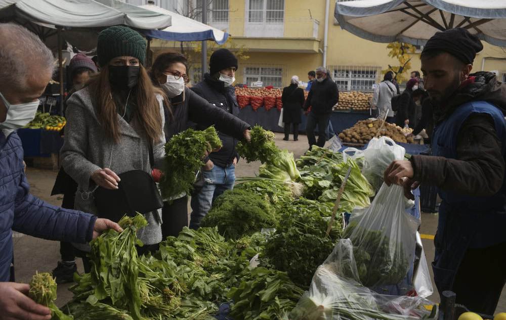 People buy food at an open air market in Ankara, Turkey, on December 5, 2021. Photo: Burhan Ozblici/AP