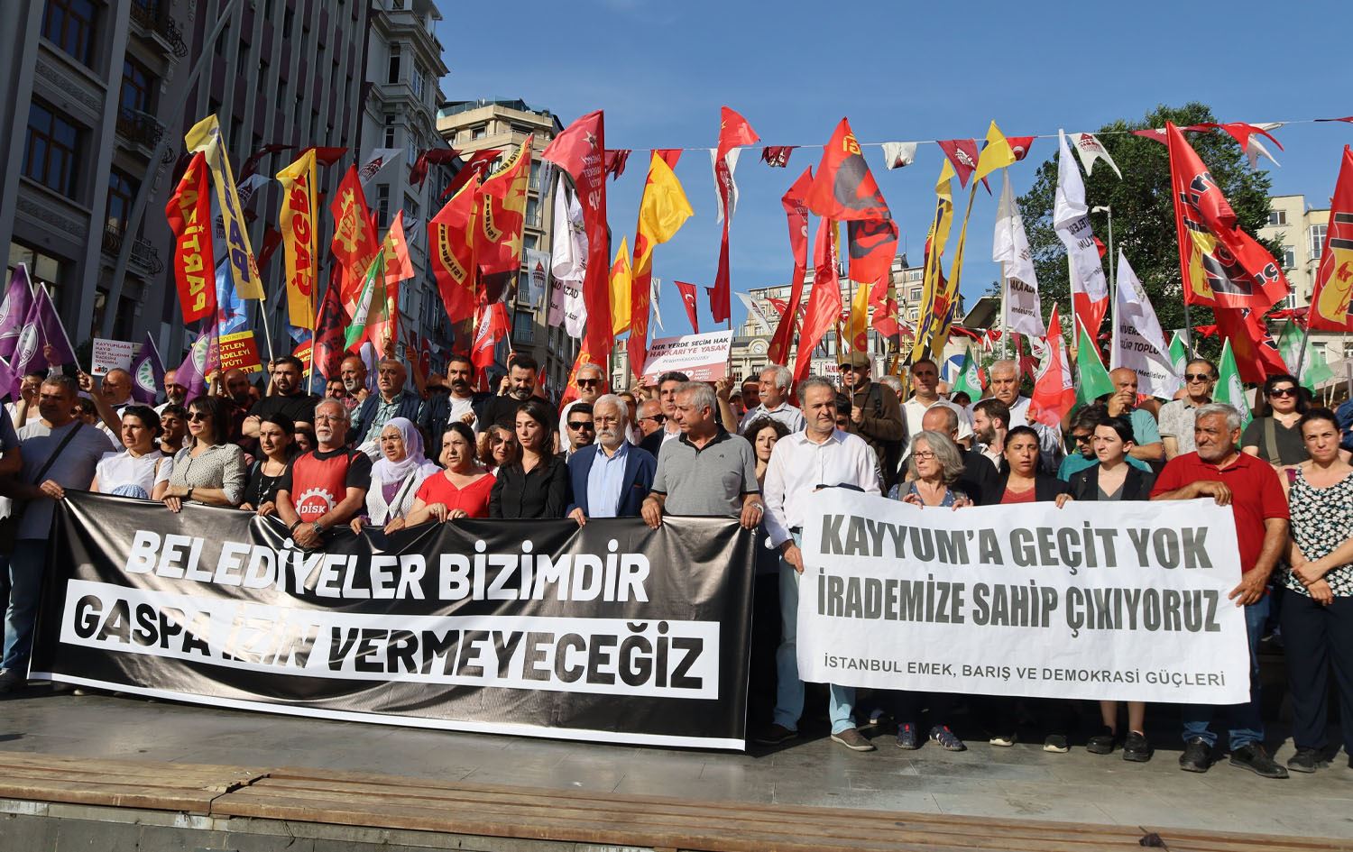 Hundreds rallied in Istanbul's Sishane square to protests the dismissal of Hakkari mayor Mehmet Siddik Akis on June 3, 2024. Photo: DEM Party on X
