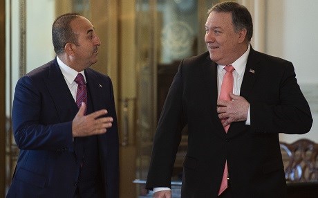 Turkish Foreign Minister Mevlut Cavusoglu and US Secretary of State Mike Pompeo held talks on Wednesday during the Turkish official's visit to Washington as part of 70th anniversary celebrations of the NATO alliance.