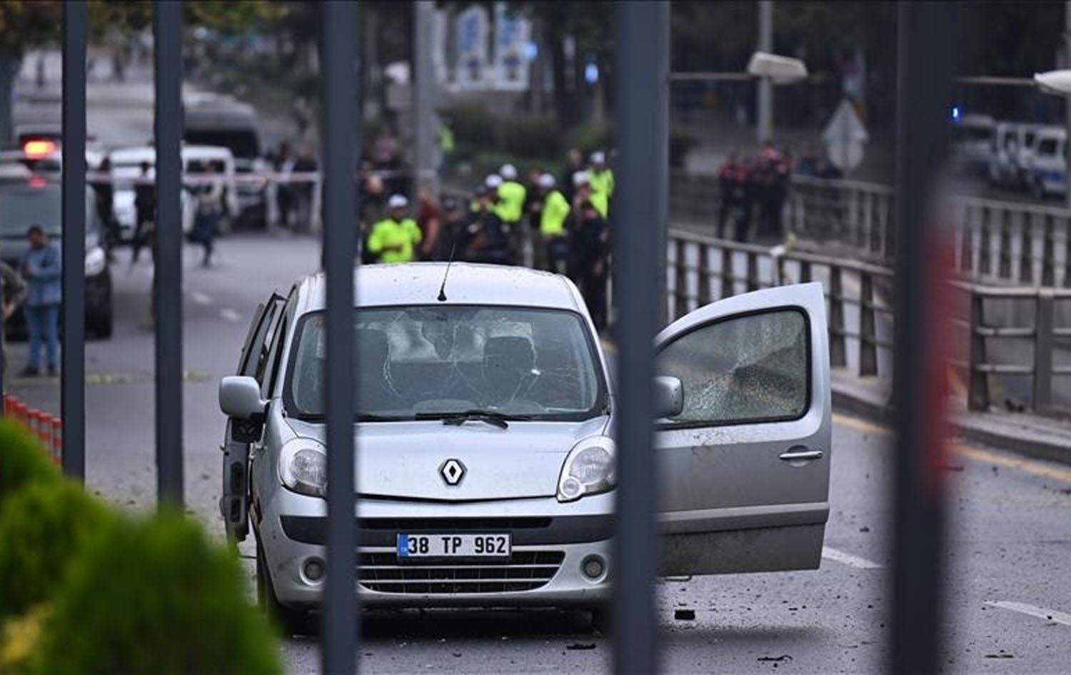 The car used by the attackers in Ankara in front of the Turkish interior ministry on October 1, 2023. Photo: Anadolu Agency