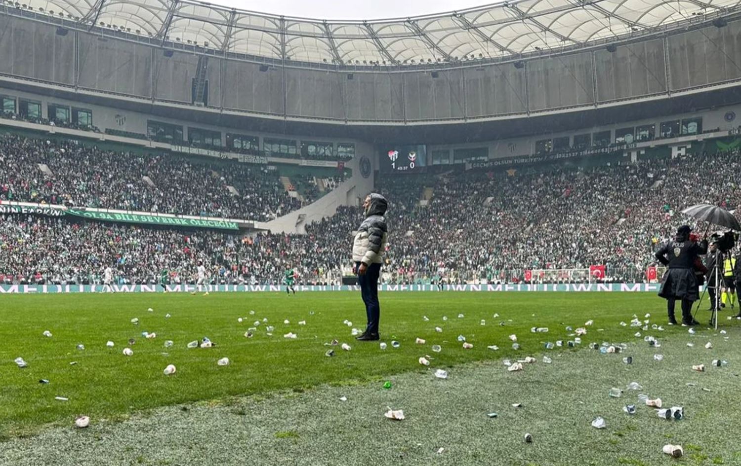 Videos on social media showed Bursaspor fans throwing knives, bullets, and water bottles onto the pitch before the match began, while chanting racist slogans against Kurds.