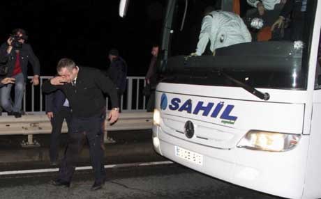 Fenerbahce TV maintained the bus was attacked by an assailant with a shotgun. It said security officers on board quickly took control of the bus and safely stopped it after the driver was hit, averting an accident. None of the players were hurt.