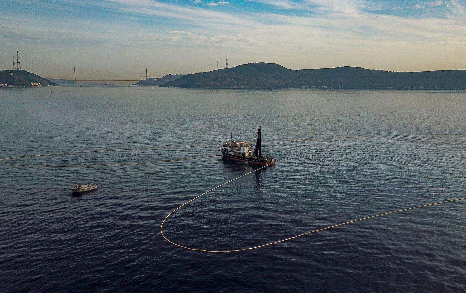 A fishing boat lays its nets in the Marmara sea off the cost of Istanbul, on November 6, 2022. Photo: AFP
