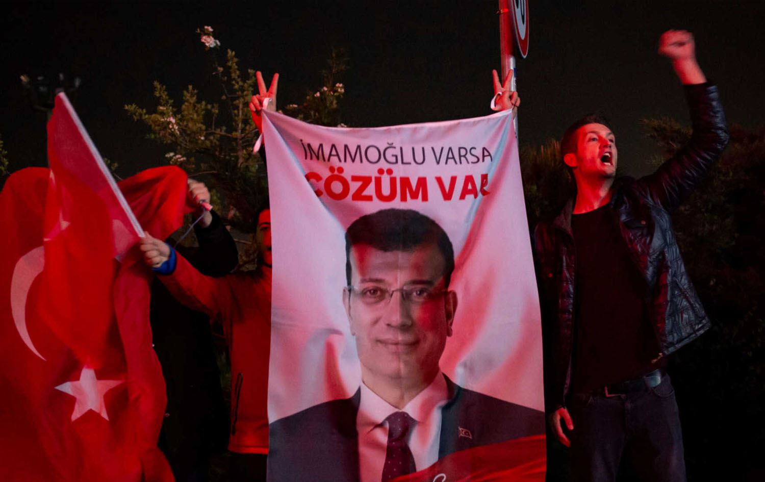A poster depicting Istanbul Mayor Ekrem Imamoglu hoisted by supporters during a rally in 2019. File photo: AFP