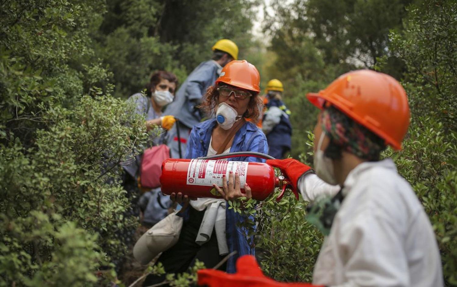 Once there, the friends formed a human chain helping to carry fire extinguishers, unfolded and rushed a firetruck’s hose to firefighters and even tackled a hillside fire themselves, dousing pressurized water on flames under the guidance of fire crews.